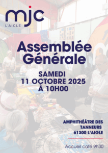 L’assemblée générale de l’association MJC Le Rond-Point aura lieu le samedi 11 octobre 2025 à 10h00 dans l’amphithéâtre du Centre Culturel des Tanneurs (au dessus de la médiathèque). Accueil / Café à partir de 9h30 ! A très bientôt.